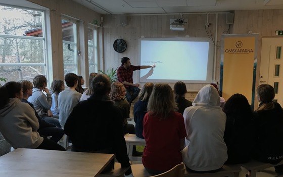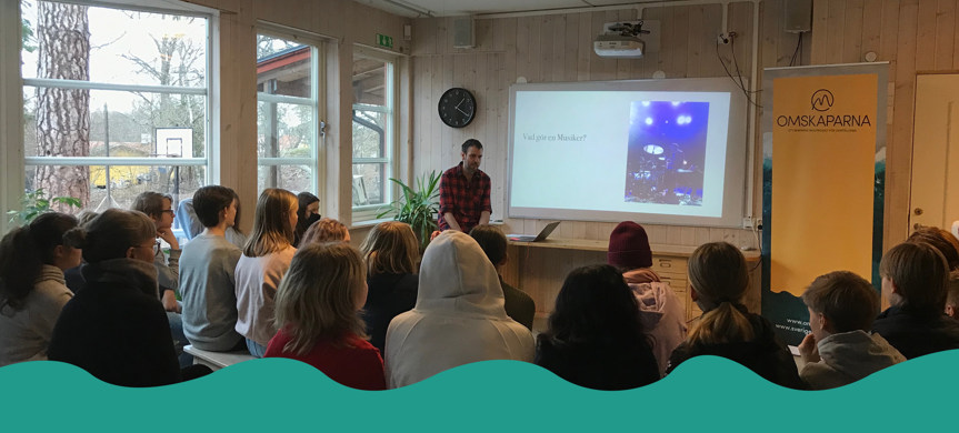 Vi fick träffa klass 6 och började med att skapa Omskapar-nätet. Alla som kastar iväg sitt namn tillsammans med ett garnnystan är med och skapar ett mönster, som hänger ihop tack vare allas medskapande.