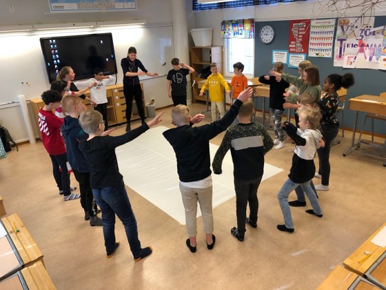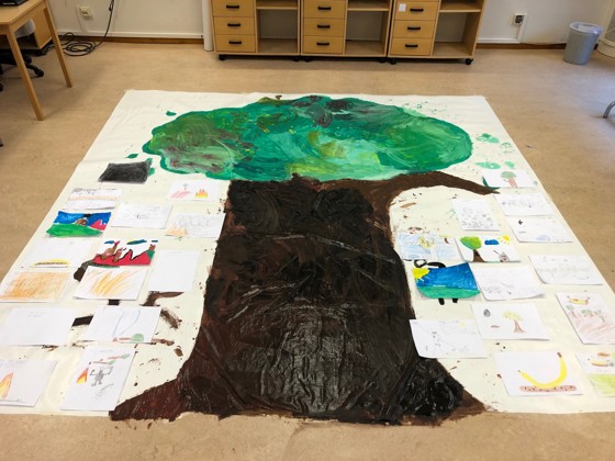 När vi hade Omskaparna så målade vi ett stort träd som var en ek. Vi målade på ett jättestort papper. Det skulle inte vara noggrant vi skulle bara få måla hur vi ville. Vi pratade mycket om skogen och hur mycket träd vi hugger ner i regnskogen och i vanliga skogen, det är inte så bra för att då kan djuren inte bo någonstans.