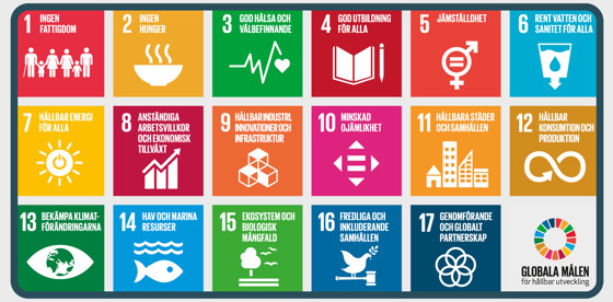 Världens ledare har tillsammans kommit överens om 17 mål för en hållbar värld som ska vara uppfyllda år 2030 – de Globala målen. Målen handlar om en hållbar värld och att vi behöver arbeta tillsammans, alla länder, för att kunna uppnå dem.