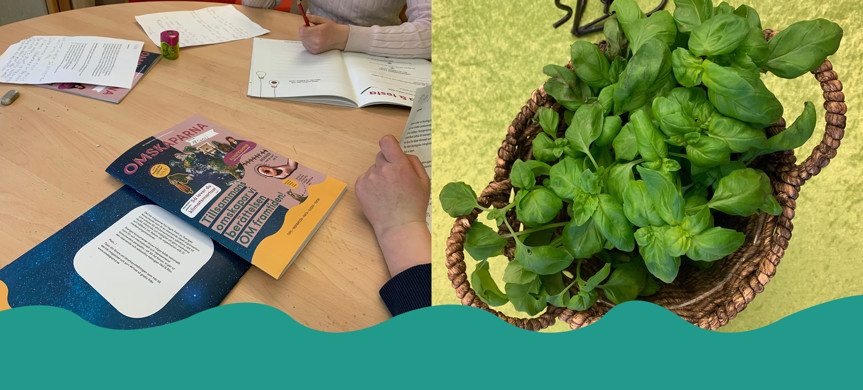 Vi låtsades att en basilikaväxt var jordens alla resurser. Om vi säger att basilikan var alla jordens resurser och vi skulle bjuda en massa kompisar på världens största middag då skulle det inte räcka till nästa dag. Vi fick ta ett basilikablad var och då fanns det väldigt mycket kvar. Vi tyckte det var kul och förstod vad som menades. Basilikan överlevde och vi kan plocka lite varje dag nu. Det gäller att inte ta mer än man behöver!