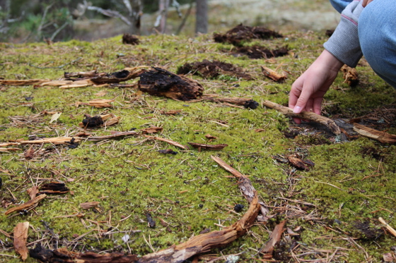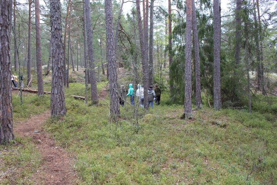Nästa uppgift var att tillsammans bygga en spiral av sånt gruppen kunde hitta i skogen.