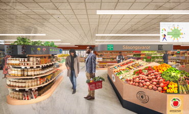 Med vår visionära prototyp vill vi visa att ett annat upplägg är möjligt, med hälsosamma och hållbara livsmedel i centrum. Målet är att inspirera handeln att tänka bortom invanda mönster när det kommer till matmiljöns utformning.