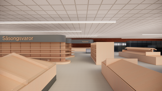 Kunden kommer rakt in i butikens kärna där de hälsosamma och hållbara alternativen finns samlade i en miljö som ska vara såväl aptitretande som inspirerande. På bilden är kärnan grönfärgad medan det längre ut i gångarna blir allt mer rött – det vill säga att ju längre ut i gångarna man rör sig desto mer ohållbara och ohälsosamma är produkterna. Förhoppningen är att få kunderna att göra det korta kundvarvet i kärnan.