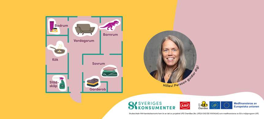 Kemikalier finns överallt i vår vardag. En del av dem kan vara skadliga för både vår hälsa och miljö. Därför har Sveriges Konsumenter tagit fram ett nytt studiecirkelmaterial – Mitt kemikaliesmarta hem. I studiecirkeln får deltagarna konkreta tips för att hitta och rensa ut skadliga kemikalier från sina hem, ett rum i taget. De får också verktyg för att sprida kunskapen vidare till andra.