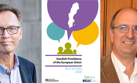 Någon som har en viktig roll är vår konsumentminister Erik Slottner. I morse träffade vi från Sveriges Konsumenter och europeiska konsumentorganisationen BEUC honom på finansdepartementet. Vi räckte över vårt gemensamma memorandum med konsumentperspektiv på en rad frågor. Och vi pratade – om vad som är viktigt för alldeles vanliga människor och framför allt för dem som är utsatta, pressade, lurade.