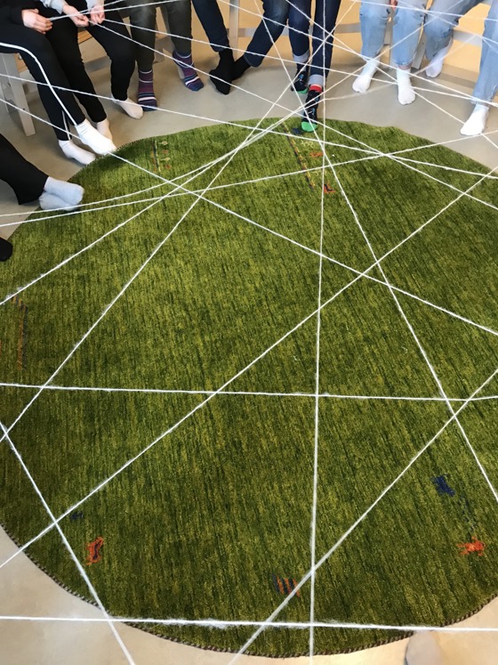 Vi fick träffa klass 6 och började med att skapa Omskapar-nätet. Alla som kastar iväg sitt namn tillsammans med ett garnnystan är med och skapar ett mönster, som hänger ihop tack vare allas medskapande.
