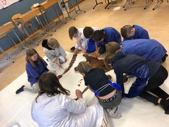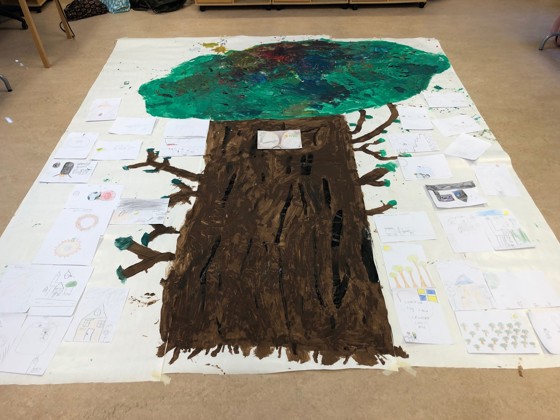När vi hade Omskaparna så målade vi ett stort träd som var en ek. Vi målade på ett jättestort papper. Det skulle inte vara noggrant vi skulle bara få måla hur vi ville. Vi pratade mycket om skogen och hur mycket träd vi hugger ner i regnskogen och i vanliga skogen, det är inte så bra för att då kan djuren inte bo någonstans.