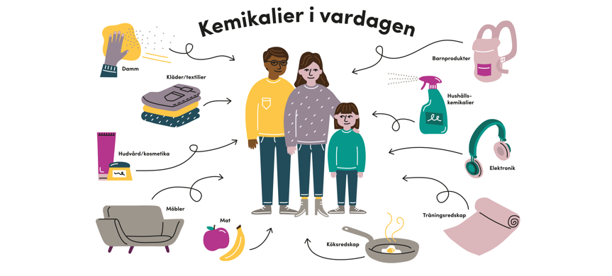 Kemikalier finns runt omkring oss, överallt, hela tiden. De finns till exempel i maten vi äter, kläderna vi har på oss, bostaden vi lever i och prylarna vi använder. I små doser under kort tid är de allra flesta ämnen ofarliga. I alla fall när vi tittar på varje enskilt ämne. Men i kombination med varandra kan så kallade cocktaileffekter uppstå, som gör att ämnena får förändrade eller förstärkta egenskaper, som i värsta fall orsakar skadliga effekter på vår hälsa och miljön.