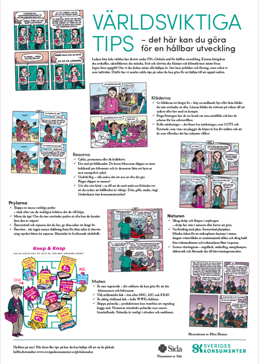 Vi har också tagit fram en affisch med en massa bra tips på vad du som konsument kan göra för att hjälpa till i omställningen av samhället så att vi kan uppnå de Globala målen. Affischen hittar du att ladda ned i spalten till höger.